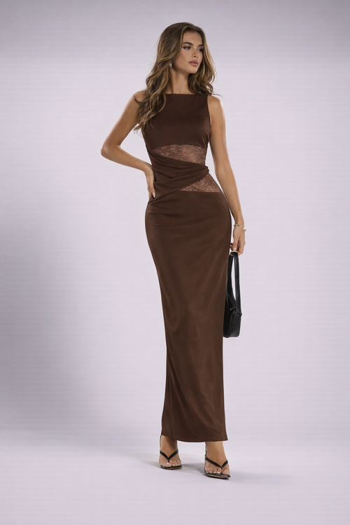 Brown Lace Stitching Maxi Dress